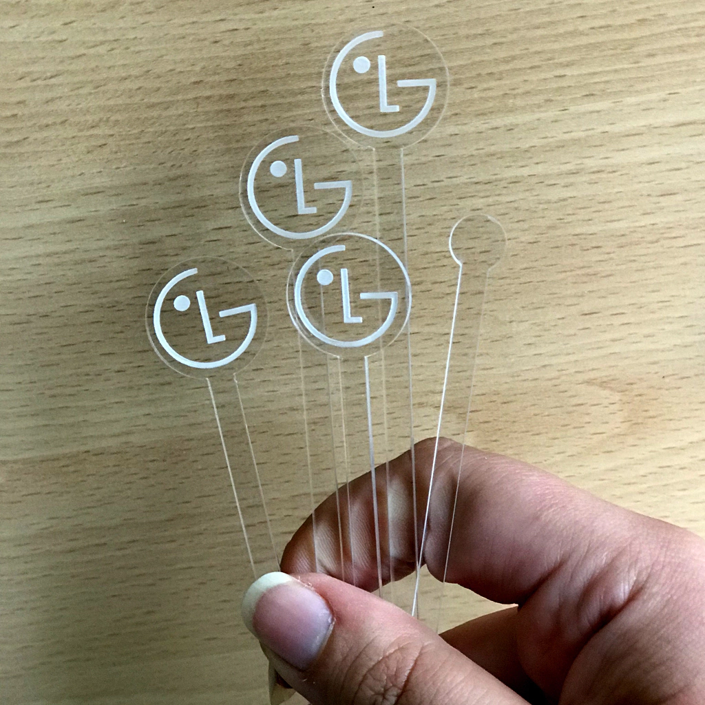 Personaliza los tragos de tu evento con nuestros revolvedores circulares de 2,2 cm grabados + palito de 17,3 cm.